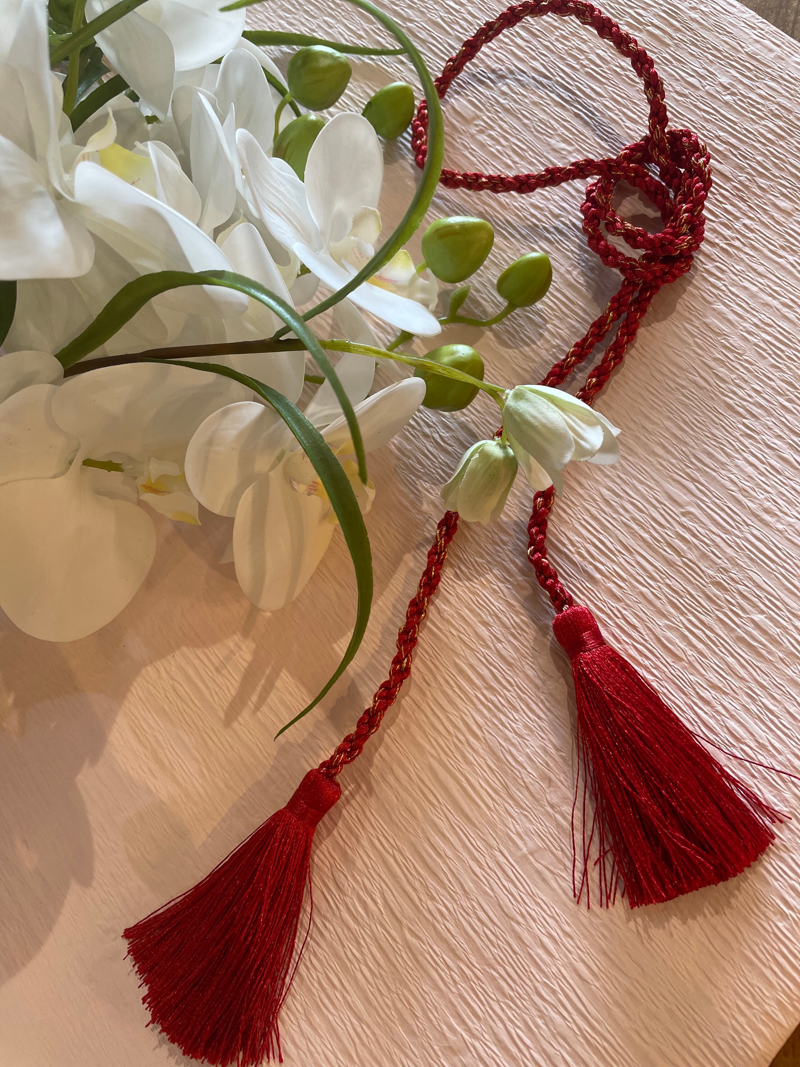 なお、写真にあります赤の組紐がお入り用の方は、プラス500円にて同梱致しますので、お申し付けください。